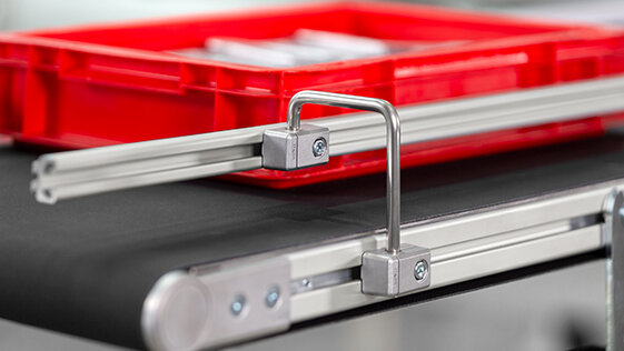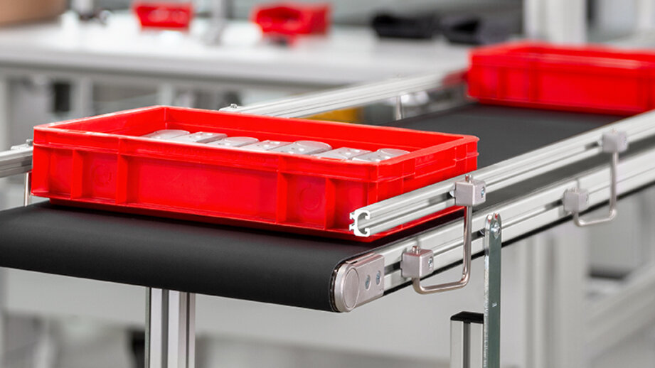 Der Gurtförderer eignet sich mit seinem durchgängigen Industrie-Förderband perfekt für den effizienten Transport aller Stückgüter – auch mit unebener Auflagefläche. Transportgurte mit geringer Haftreibung machen den Gurtförderer staufähig. Mit nicht staufähigen Gurttypen sind Steigungen von bis zu 20 Grad bei kontinuierlichem Werkstücktransport möglich. Je nach Breite und Gurtart beträgt die Traglast der Förderer bis zu 100 kg.