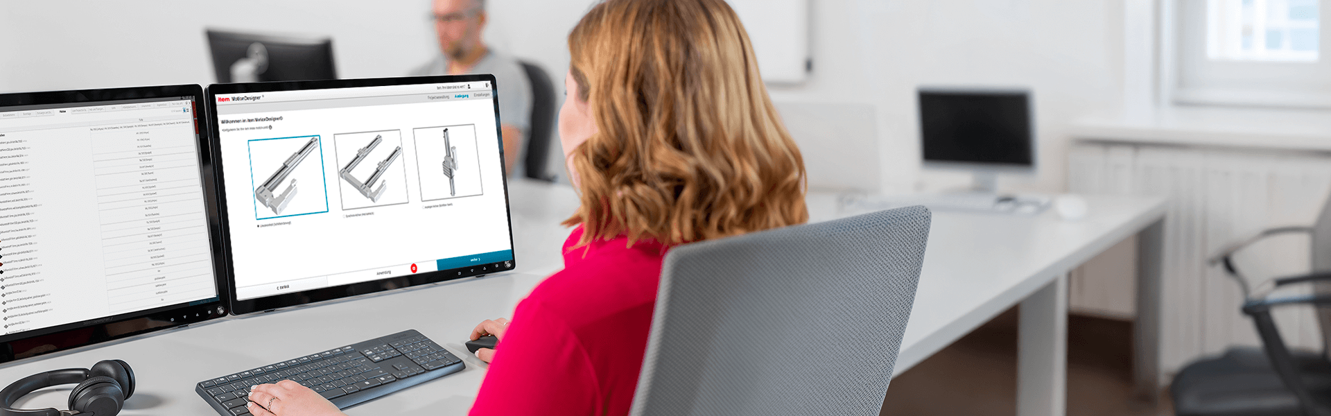 Erfolgreich zur fertigen Lineartechniklösung: Mit dem Lineareinheit-Konfigurator item MotionDesigner® und der Inbetriebnahme-Software item MotionSoft®.