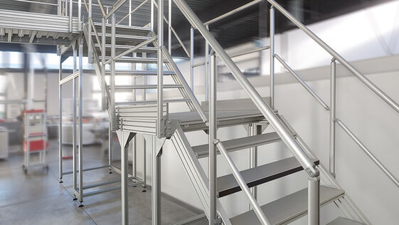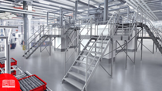 Konstruieren Sie mit item sichere und flexibel anpassbare Maschinen- und Industrietreppen sowie Podeste. Dank des item Treppen/Podeste Systems ist es besonders einfach, alle Bereiche einer Maschine zu erreichen und in unterschiedlichen Ebenen zu arbeiten.