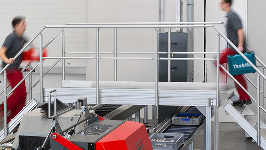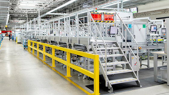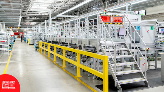 Erfahren Sie in einer Erfolgsstory, warum Miele bei der Waschmaschinen-Produktion auf eine Spezialkonstruktion aus item Treppen und Industriepodesten setzt.