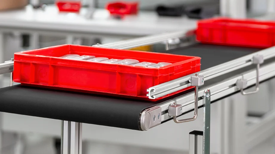 Specialised but still modular – with the item Conveyor Belt System, you will find the perfect solution for every individual transport task. Due to their modular design and end-to-end compatibility, the components of the item Conveyor Belt System can be combined flexibly. The wide range of conveyor belts and drives ensures that item conveyor belt systems can be optimised for any task. That’s how to achieve efficient material flow!