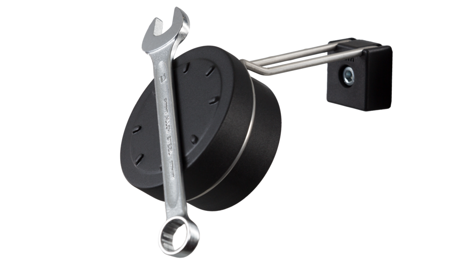 Learn more about the latest featured product in item's extensive catalogue: Magnetic Holder D70, ESD. The tools and pieces that matter are always in teach thanks to this magnetic innovation. Set down tools and store small, ferrous parts on this component, with an insert that can be rotated to alter the surface angle to improve ergonomic results. The raised bumps, arranged in a circle, keep tools in place.