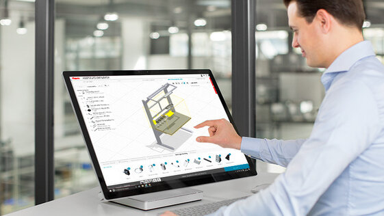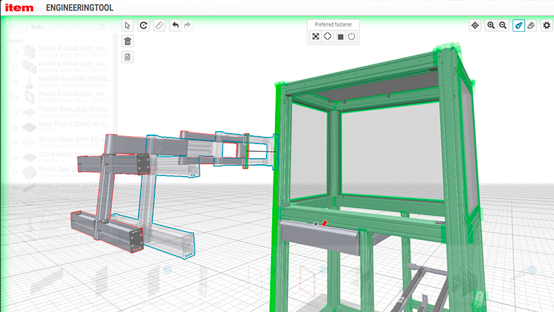 Nothing to download, nothing to install: Designing solutions based on the modular item building kit principle is quick and easy with the item Engineeringtool – simply work directly in your browser. Standard engineering tasks can be handled up to 94% faster with this online configurator than when using a CAD system. Ingenious functions such as integrated collision checks and automatic incorporation of fasteners make light work of any task.