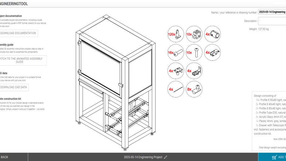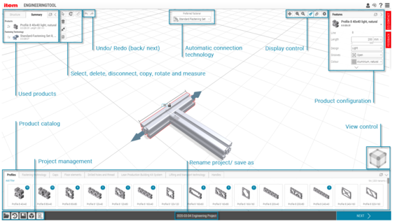 The quick and easy way to design your projects, whenever and wherever you want. The intuitive item Engineeringtool supports online design engineering in a 3D environment. You can position components as required using drag and drop controls. The software also provides you with all the project documentation, assembly guides and CAD data you need.