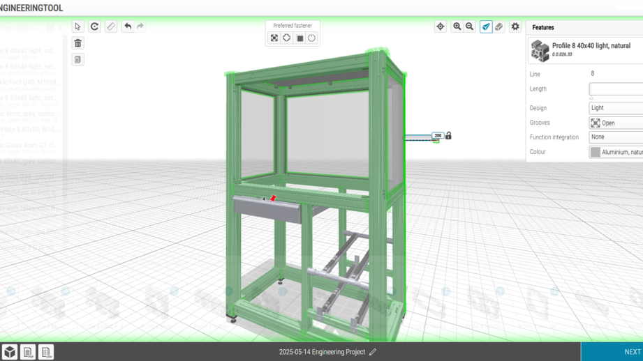 The item Engineeringtool also ensures it is exceptionally simple to create secure and stable connections between various components. The online configurator identifies the profile being used and automatically selects the appropriate Fastening Set.
