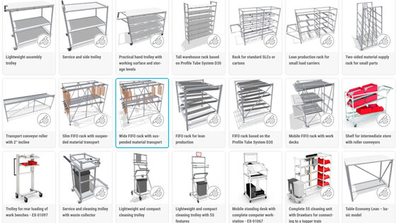 Profile Tube System D30 is at the heart of the item Lean Production Building Kit System. Transport trolleys and racks can be created in just a few simple steps. The modular system means you can adapt and extend your manufacturing equipment, racking and other constructions whenever you want. Professionals focus on complex Karakuri/LCA structures.