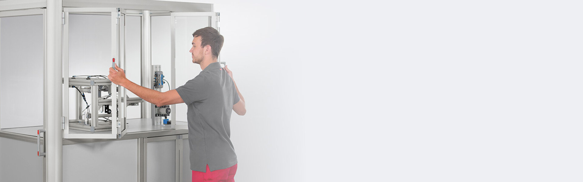 Che si tratti di cabine macchina classiche, soluzioni per l’integrazione di cobot o cabine per camera bianca con unità filtro ventola, l’ampio assortimento del sistema item permette di realizzare soluzioni con componenti di un solo fornitore. La modularità e compatibilità di base assicurano agli utenti una grande flessibilità di progettazione.