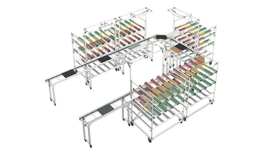 Niezależnie od tego, czy jest to komórka w kształcie litery U, czy proste połączenie kilku stacji roboczych: Połącz swoje stacje robocze z regałami przepływowymi i technologią przenośników, aby stworzyć linie montażowe. Zapewnia to płynną produkcję. Dzięki kompleksowej modułowości można dostosować linie montażowe dokładnie do swoich wymagań.