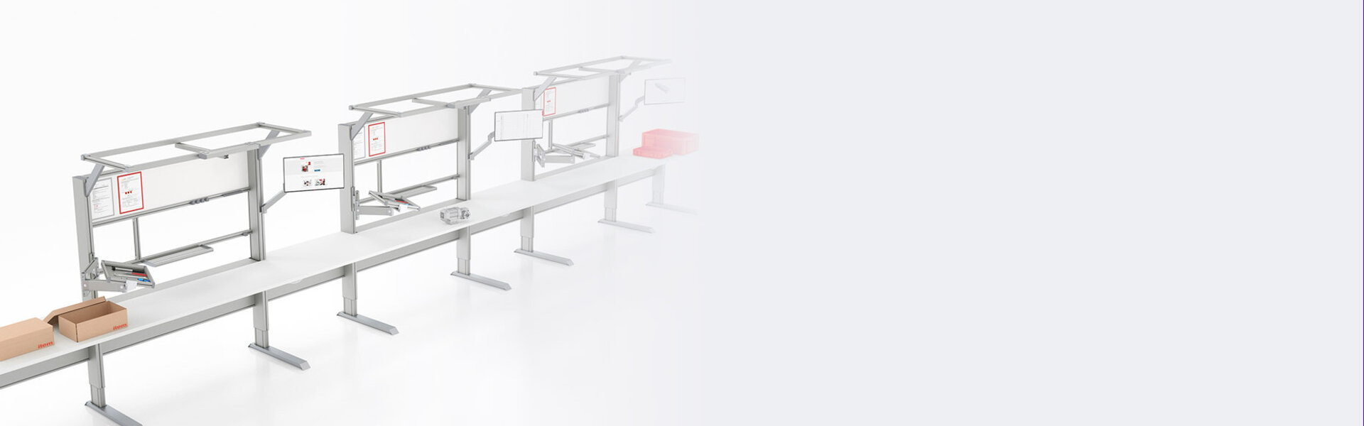 Zaprojektuj płynny i ciągły strumień wartości dzięki liniom montażowym item. Dzięki modułowości systemu stacji roboczych item można łatwo łączyć istniejące stacje robocze. Linie montażowe można elastycznie dostosowywać i rozbudowywać - nie ma potrzeby rekonfiguracji linii produkcyjnej. Oznacza to, że przepływ jednej sztuki lub inne zasady oparte na filozofii lean mogą być wdrażane w sposób wydajny i ergonomiczny.