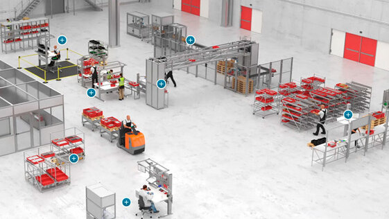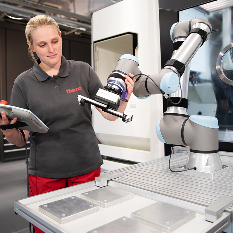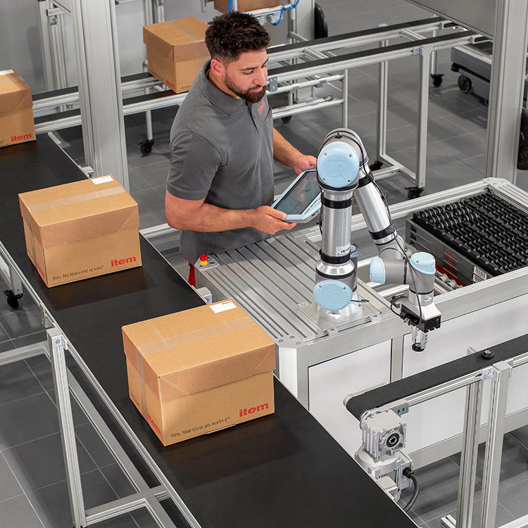 Rozwiązania do automatyzacji produkcji odciążają pracowników i zwiększają wydajność procesów. Monotonne zadania mogą przejąć roboty stacjonarne, a transport można zautomatyzować za pomocą robotów mobilnych, jednostek liniowych i przenośników taśmowych. Modułowość systemu budowlanego item pozwala dostosować rozwiązania do indywidualnych potrzeb i łączyć różne dyscypliny, korzystając jednocześnie z ponad 4500 wzajemnie kompatybilnych komponentów.